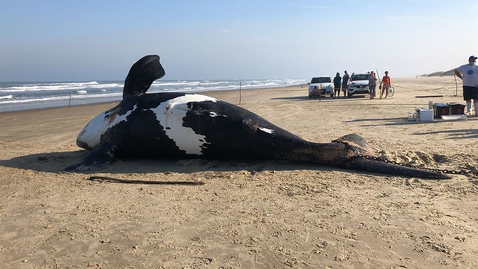 Filhote de baleia-franca encalha na areia no Sul de SC